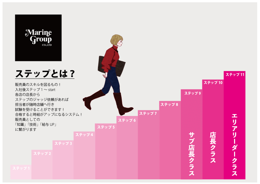 ステップアップしてゆくことで「プロの販売員」として成長できる環境になっています